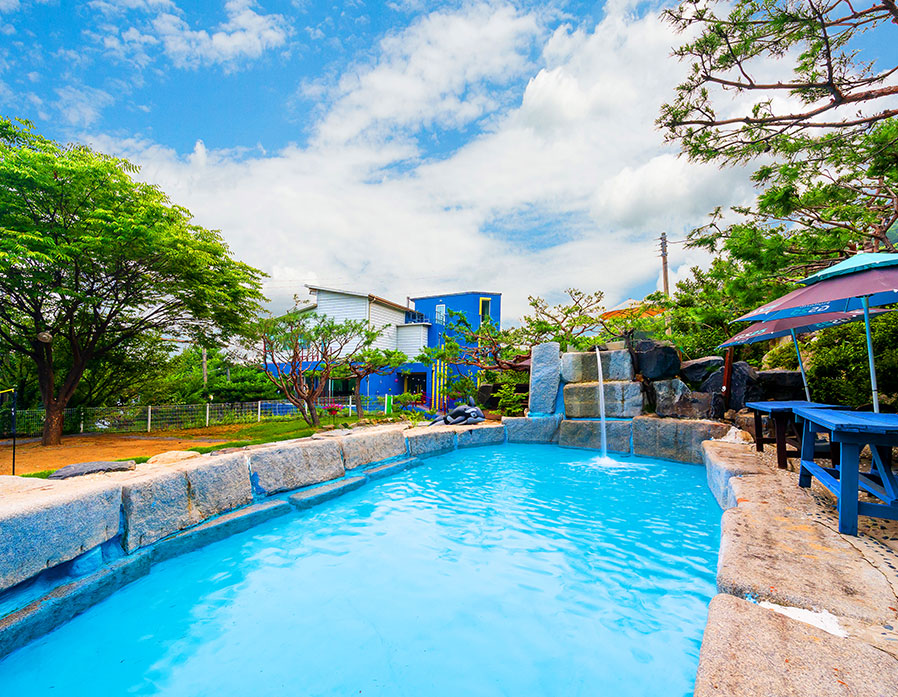 ※해당 시설은 인근 펜션 이용객과 함께 이용됩니다. - 사이즈: 10m*6m (수심 약 1.3m) - 이용시간: 10:00 - 20:00 - 이용 당일 체크인 이후부터 이용 가능합니다. - 25년도 오픈기간: 6월6일 ~ 9월13일 - 해당 수영장은 반려견 동반이 불가합니다. (사람 전용) - 에어펌프 구비되어 있습니다.
